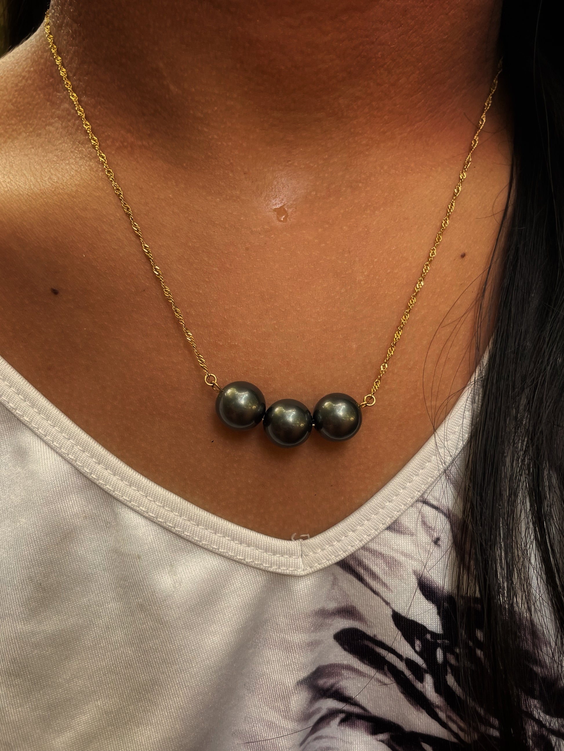 The Ocean Line Necklace features a clean row of three polished shell pearls, centered on our signature 45cm+5cm 18K PVD gold water wave chain. Designed for balance, simplicity, and everyday glow, this piece flows effortlessly from casual to coastal chic.